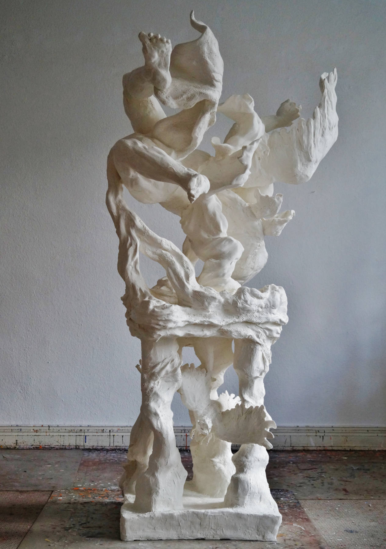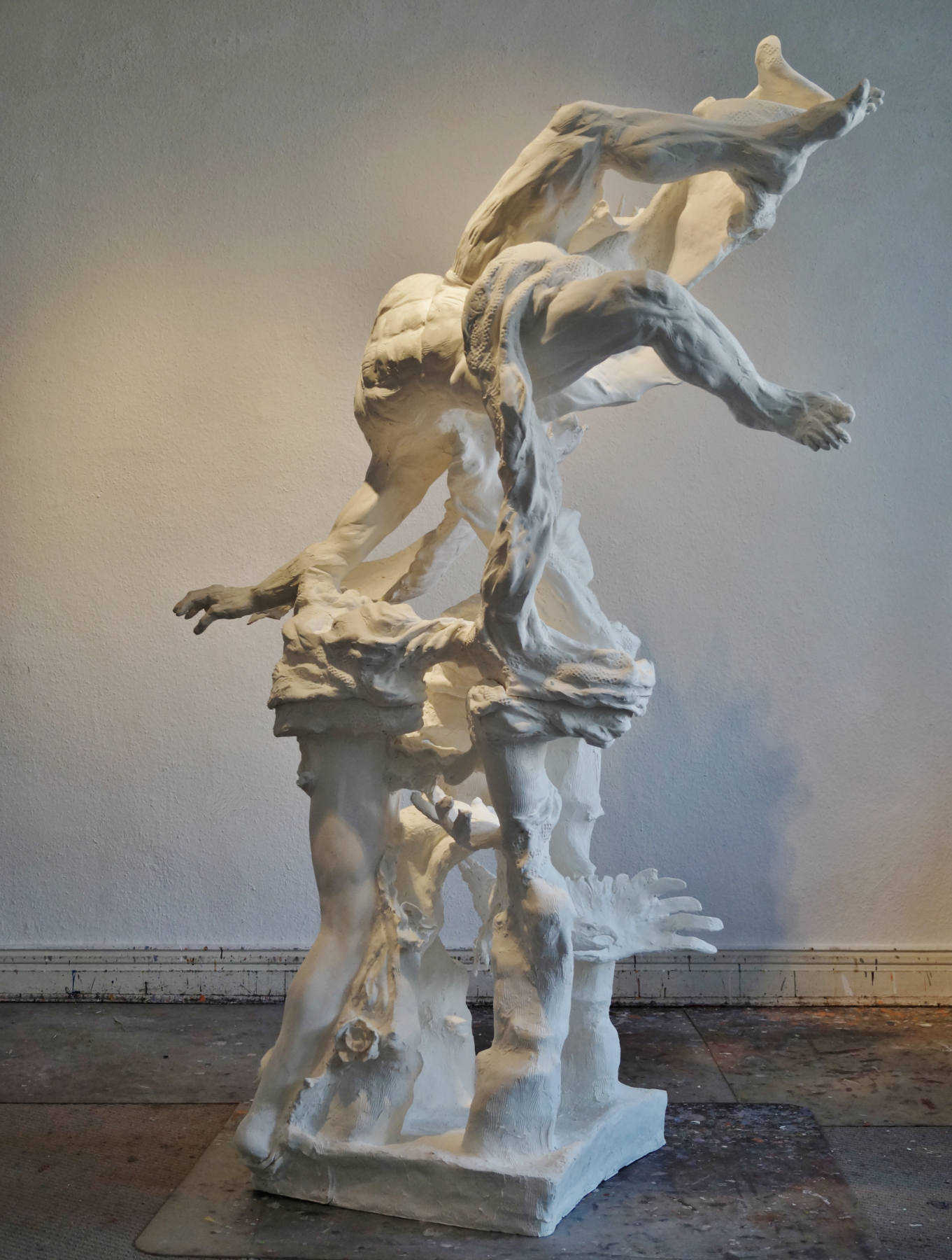 “Concepts of communication between humans and the above, or beyond, have been explored since ancient time, as the smoke of sacrifices curling into the heavens, or winged messengers from God or the Gods. Winged phantasy animals or humans evolved in Persia, India, China, other Asian and American cultures, leading to the idea of benign angels (as well as devils) in various religions. Soaring Calm and Free offers an open-ended reference to this long tradition. Is this a messenger of God or the Gods, a falling angel, an Icarus whose unlimited ambition made him fly too high, or does this sculpture personalize a freewheeling on the winds of life?”
